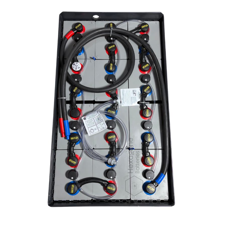 Batterie de traction 24V 1000Ah très haute capacité pour chariots élévateurs frontaux de 1 à 1,5 tonne toutes marques. Conçue pour les sites à forte sollicitation ne pouvant tolérer de recharge en cours de poste.